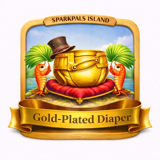 The Gold-Plated Diaper is awarded in playful honor to visitors whose presence on SparkPals Island has become unmistakable. It recognizes patience, persistence, and a willingness to stick around long enough for the island’s humor to land. This tier celebrates long-term participation with a sense of ceremony and self-awareness, marking a deepening relationship with the island and its rhythm.