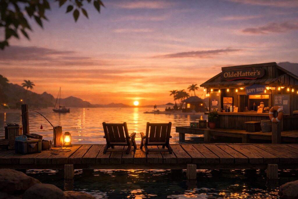 Documented by Roo — biographer of OldeHatter There’s a little island in the metaverse where nothing is urgent.The shrimp are